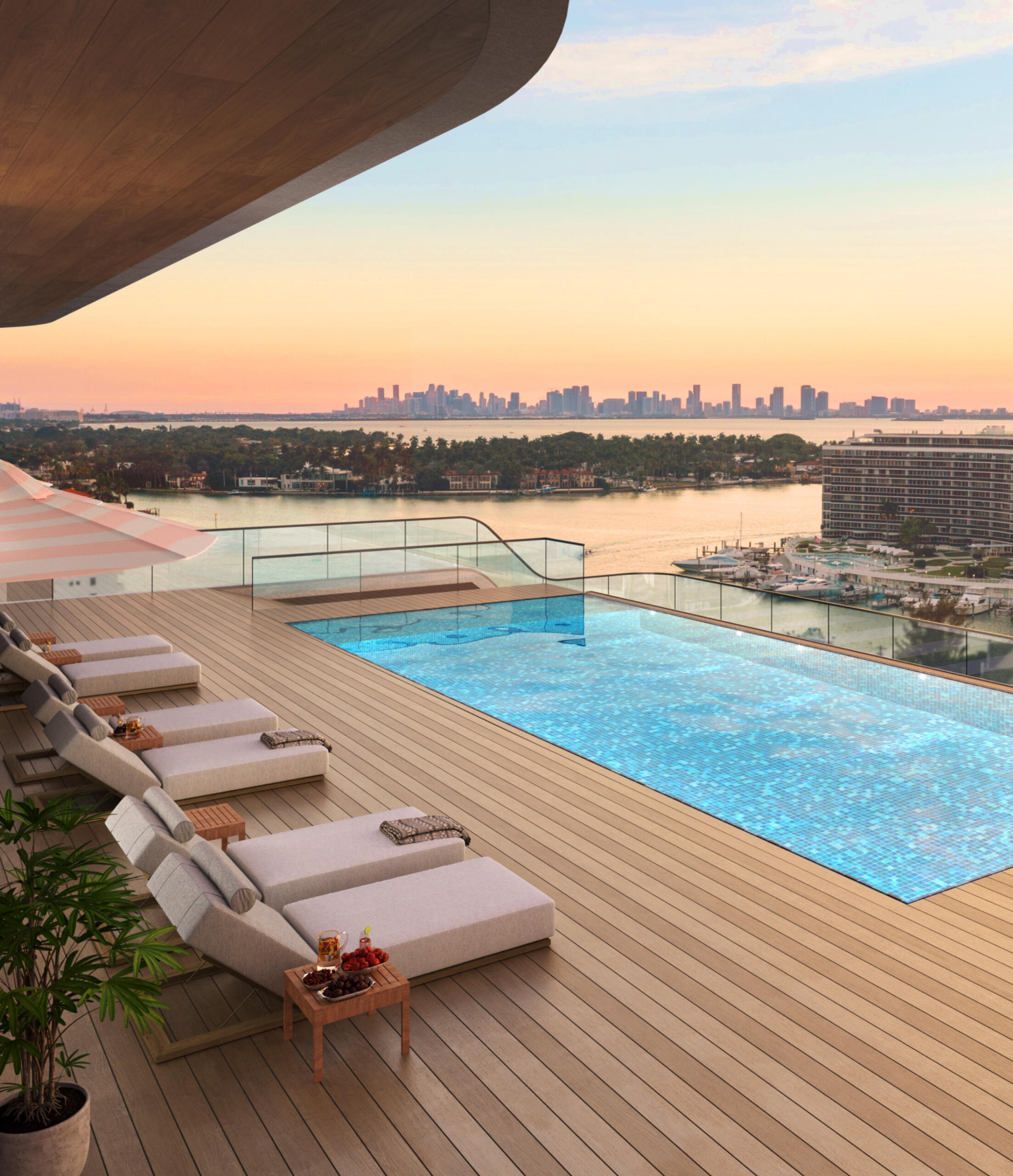 Esta nueva torre es un condominio de 9 pisos que establece un nuevo estándar para los desarrollos residenciales de Miami Beach.