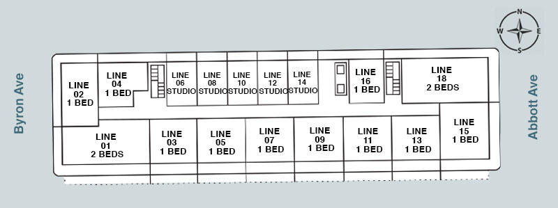 | Estudio 6,8,10,12,14 | Estudio / 1 Baño (429-432 SF / 40 M2) |